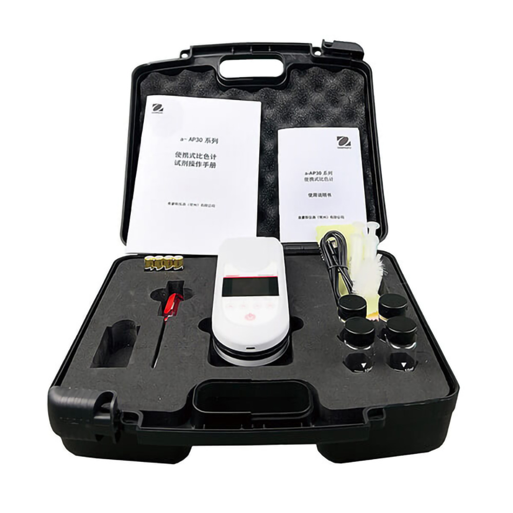 The OHAUS AP30MC Portable Colorimeter provides multi-parameter functionality with fixed wavelengths at 420, 470, 520, and 620 nm. It supports COD, phosphate, ammonia, and chlorine testing, with ??0.01 Abs reproducibility and 5000 data storage. Ideal for labs and field testing.