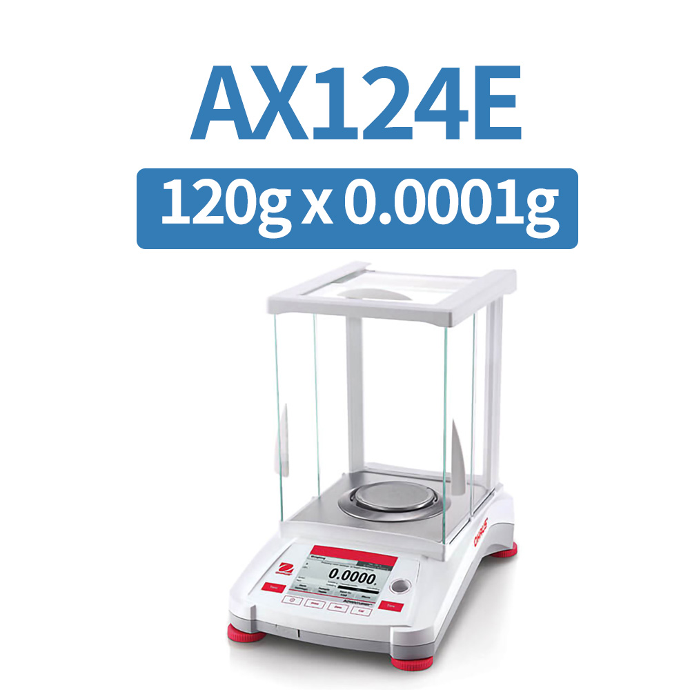 The OHAUS AX124E Balance, 120 g x 0.0001 g, Class I / Class II offers dependable accuracy and intuitive operation for laboratories, education, and industrial environments. This is an External Calibration model.