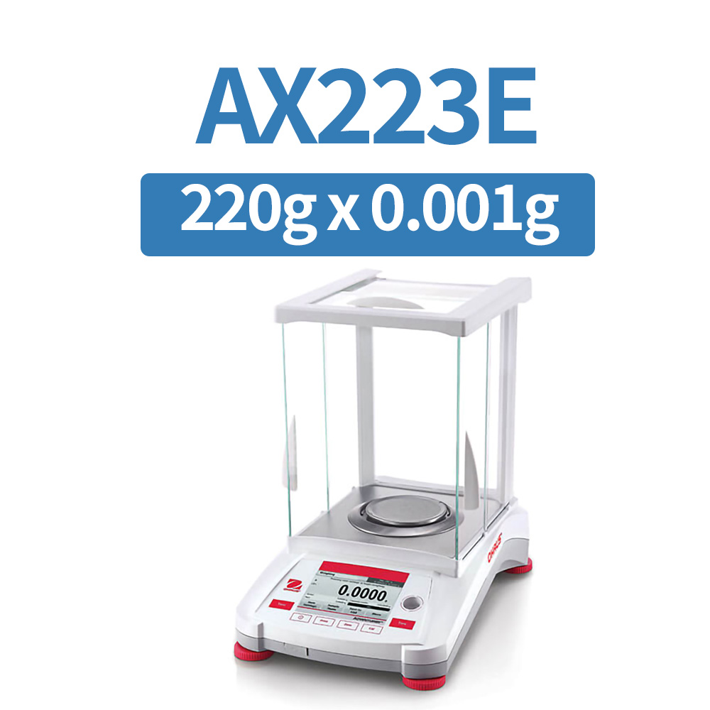 The OHAUS AX223E Balance, 220 g x 0.001 g, Class I / Class II offers dependable accuracy and intuitive operation for laboratories, education, and industrial environments. This is an External Calibration model.