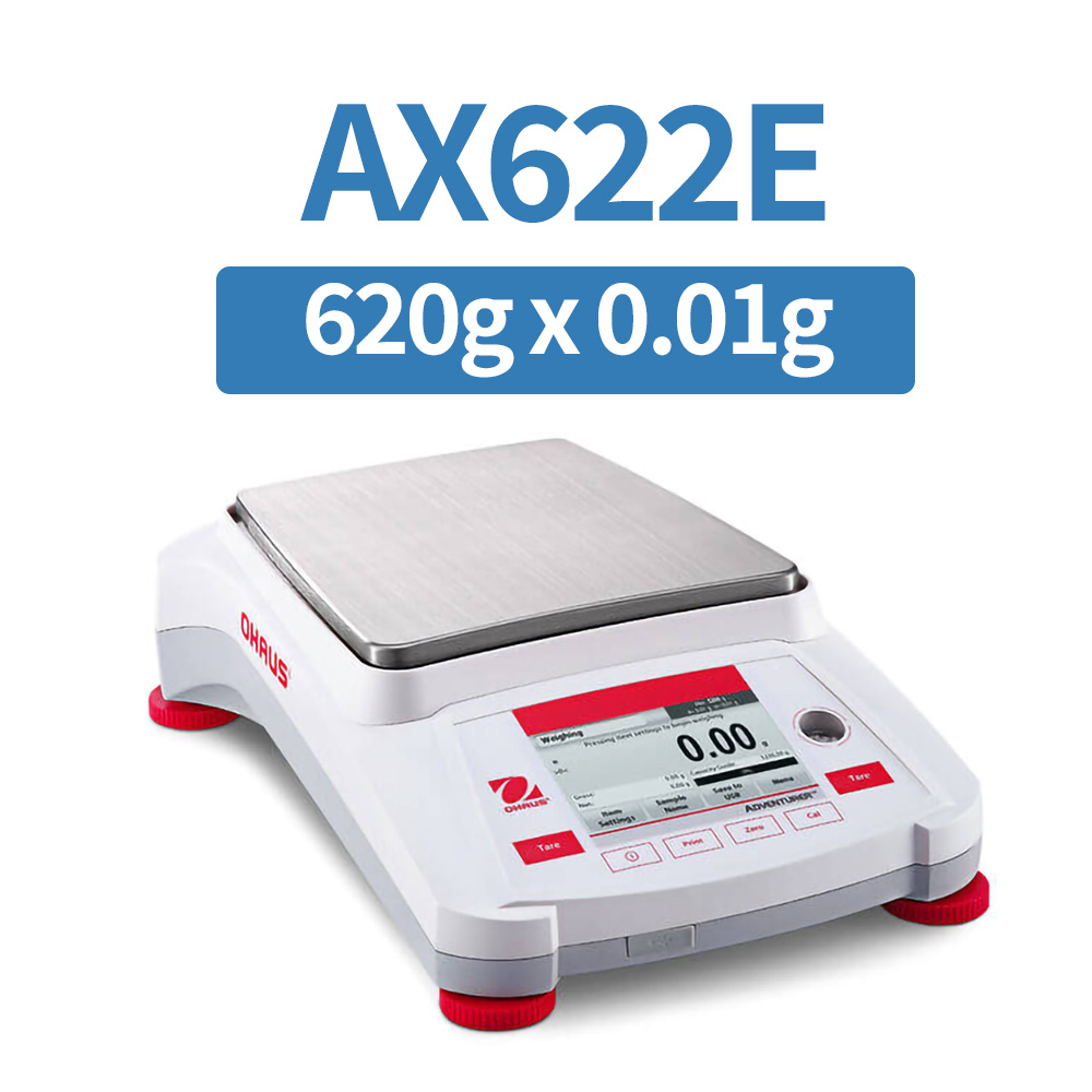 The OHAUS AX622E Balance, 620 g x 0.01 g, Class I / Class II offers dependable accuracy and intuitive operation for laboratories, education, and industrial environments. This is an External Calibration model.