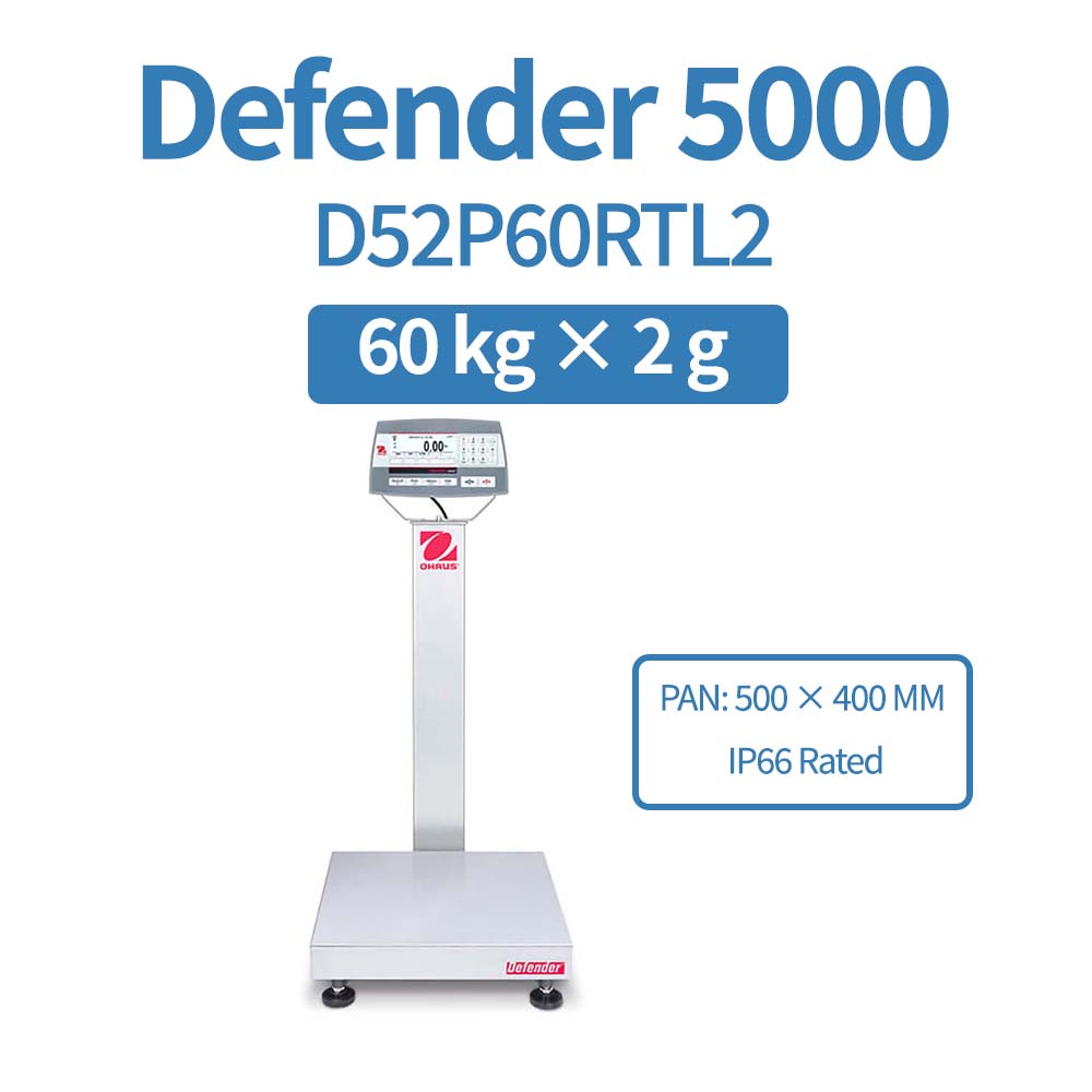 OHAUS Defender 5000 D52P60RTL2 is an industrial multifunctional bench scale featuring the TD52P ABS plastic indicator.