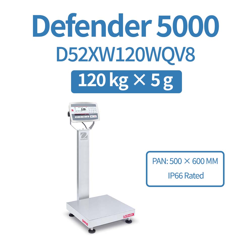 OHAUS Defender 5000 D52XW120WQV8 is a multifunctional stainless steel bench scale designed for industrial and commercial weighing applications. With a capacity of 120 kg x 10 g, it offers fast stabilization and precision performance.