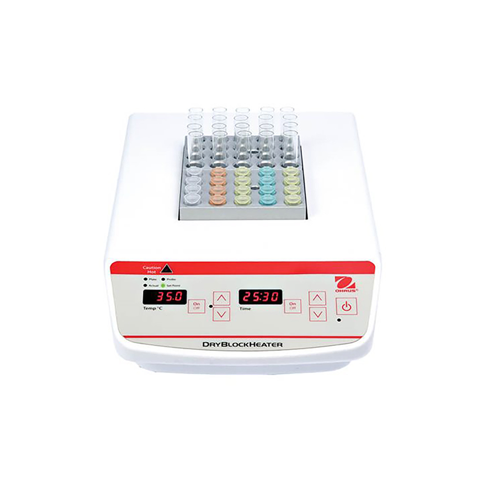 The OHAUS HB2AL Analog Dry Block Heater accommodates two aluminum blocks, offering consistent heating up to 120 ??C with ??2 ??C accuracy. Designed for basic laboratory heating and incubation. Features sturdy metal housing, simple operation, and 230 V power for dependable daily use.