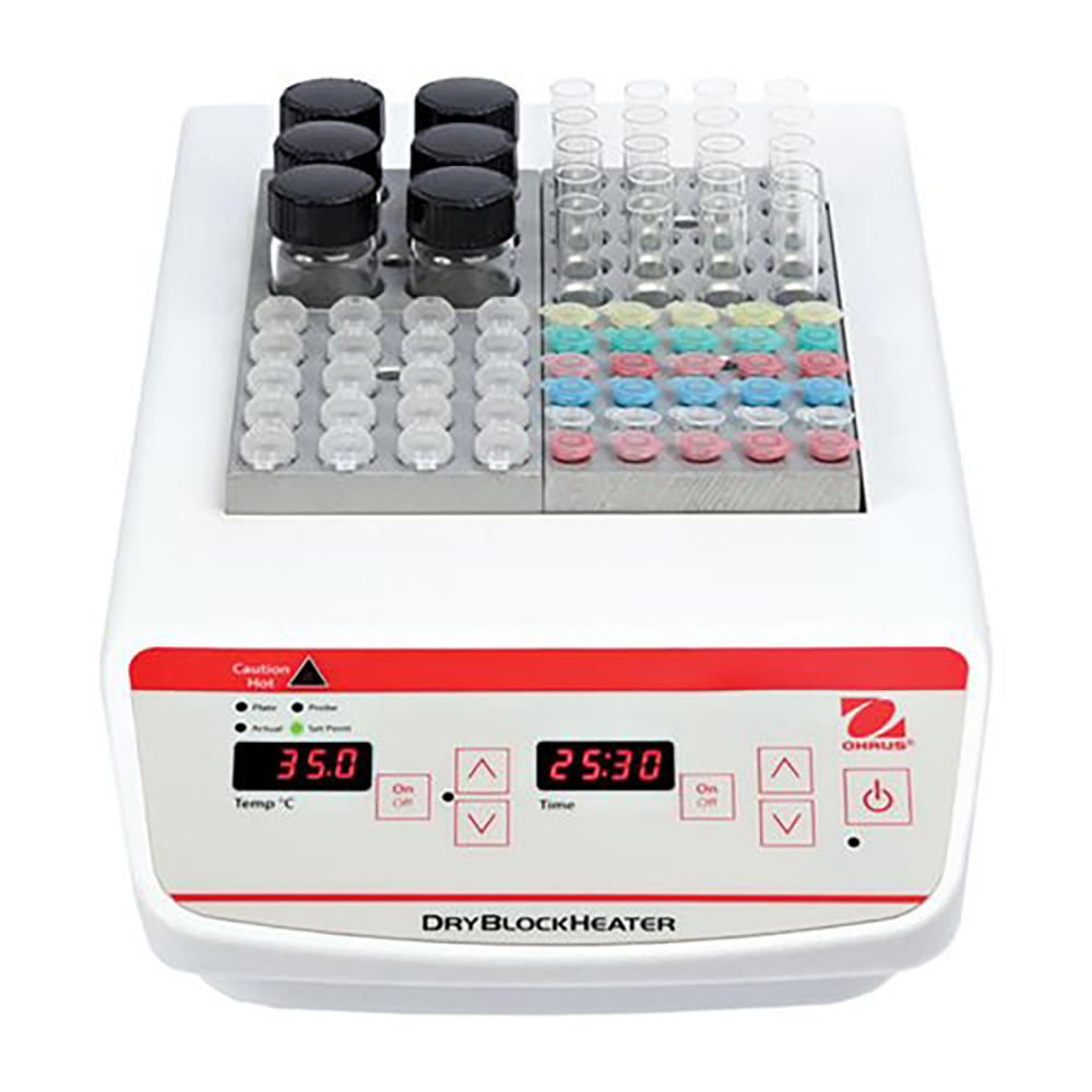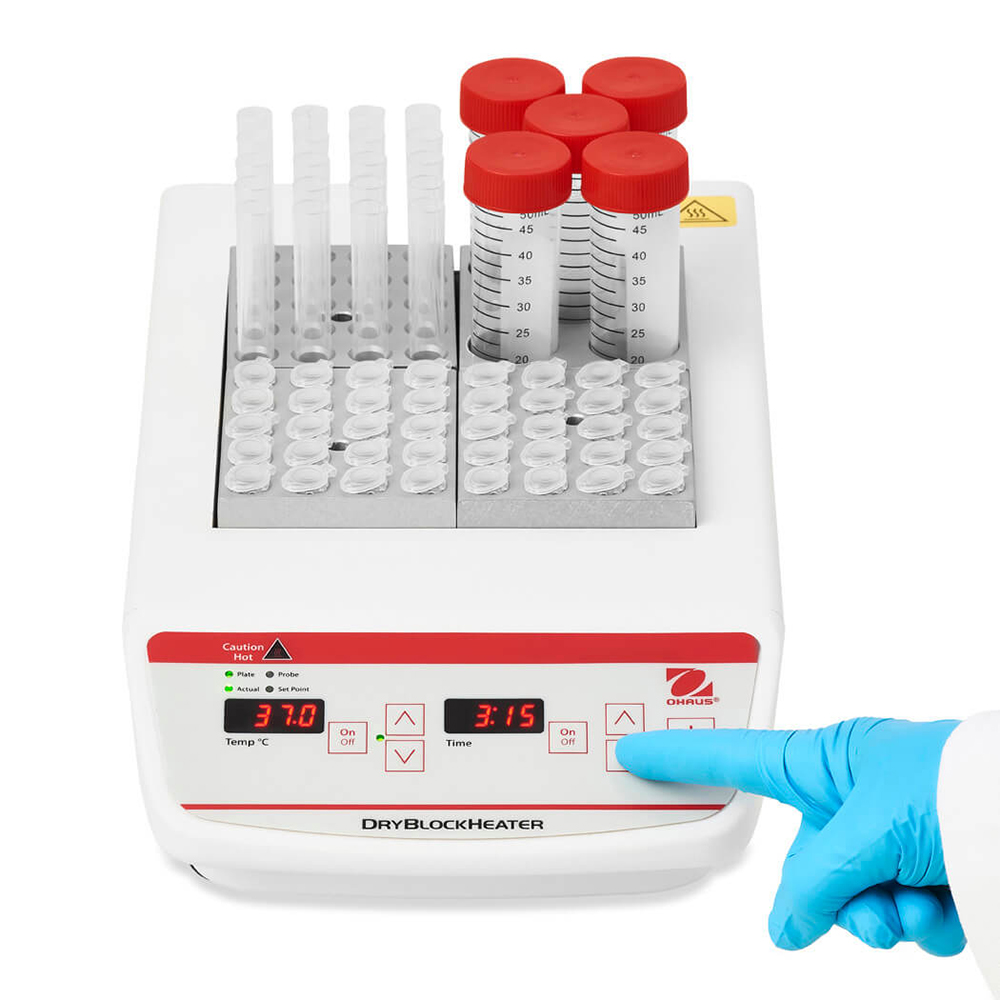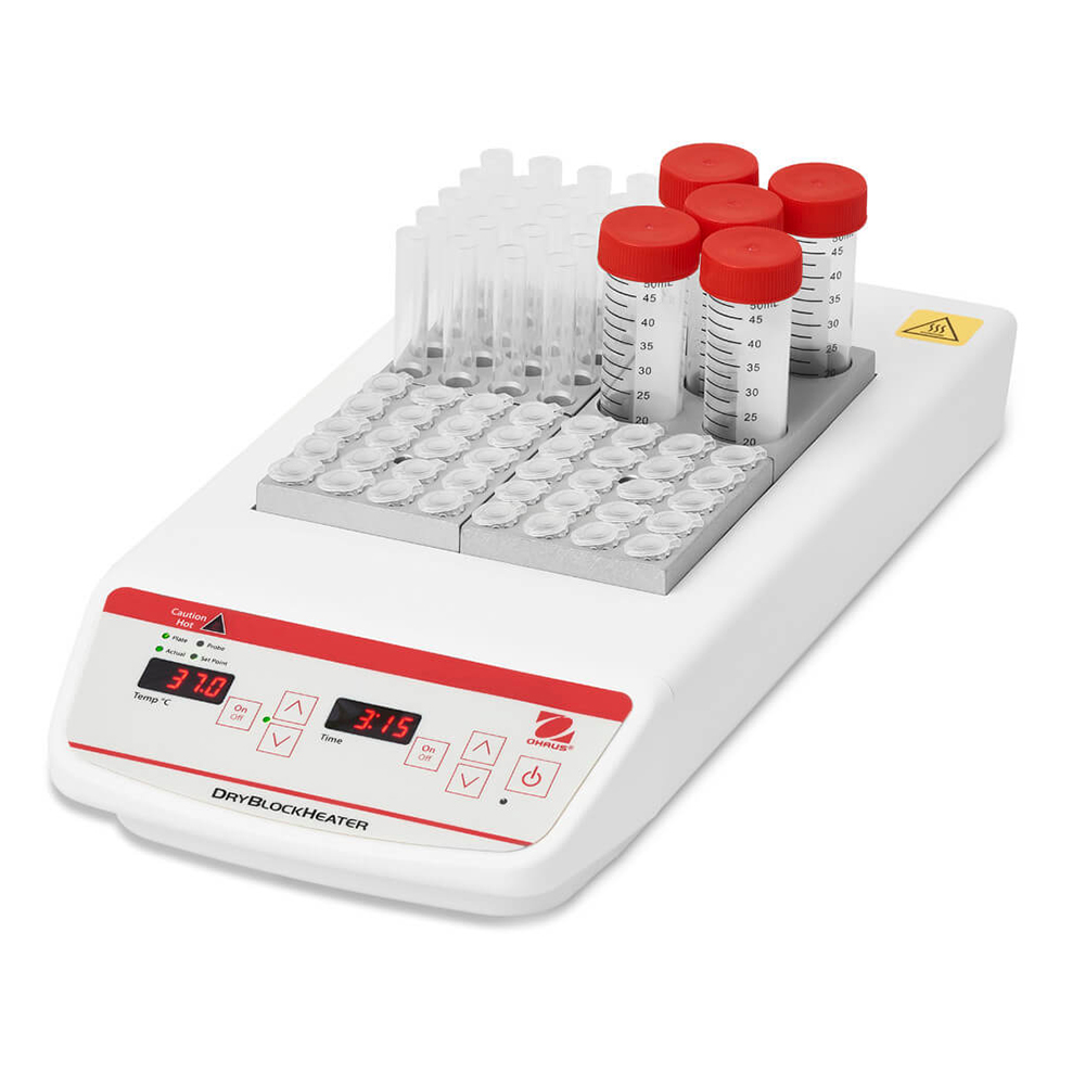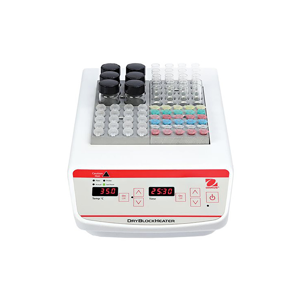 The OHAUS HB4AL Analog Dry Block Heater holds up to four blocks and provides uniform heating up to 120 ??C. Simple analog dial allows straightforward operation for educational and routine laboratories. Rugged metal housing ensures long service life under 230 V power supply.