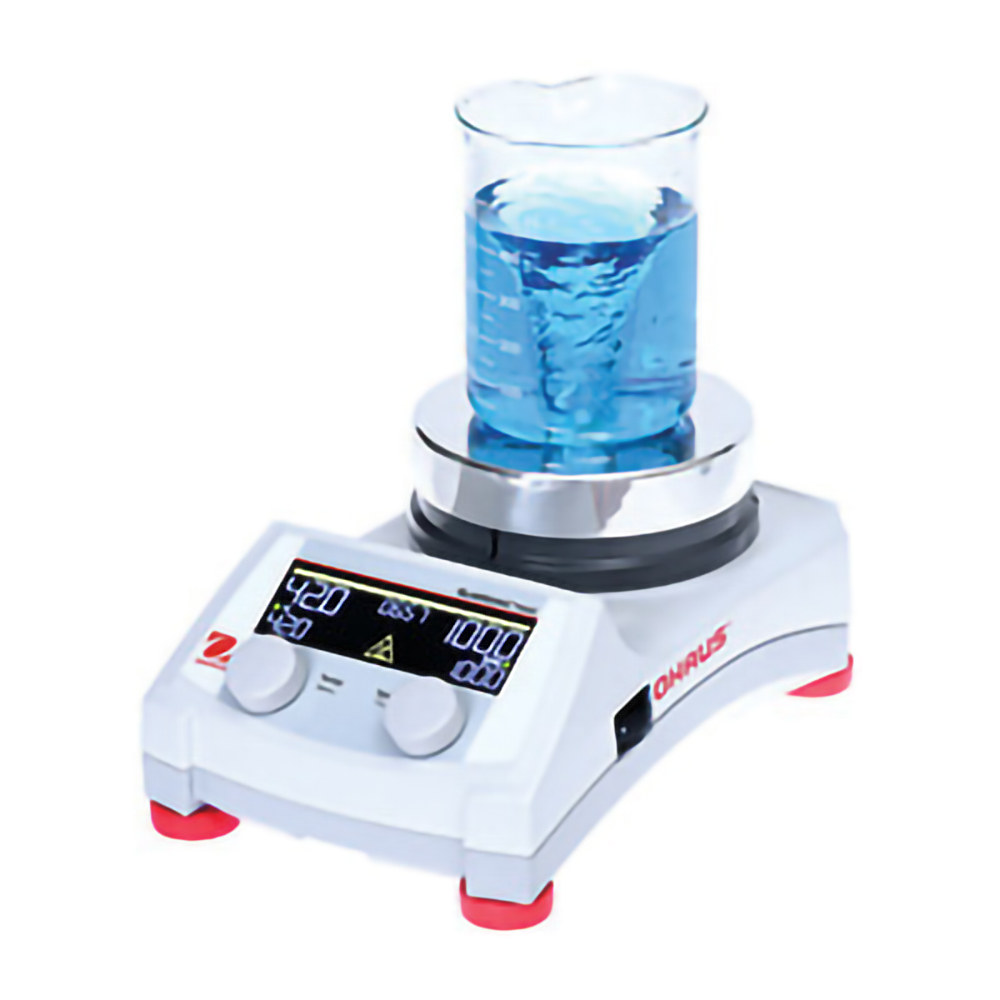 The OHAUS Heated Stirrer E-G71HS10C -K1 is an efficient and reliable heated stirrer for laboratory mixing tasks. With an adjustable speed range of 100?C1,500 rpm, it offers uniform stirring for solutions and suspensions, along with precise temperature control from Ambient +5 ??C to 100 ??C. High-capacity heated stirrer designed for larger volumes, ideal for mixing and heating buffers and reagents.