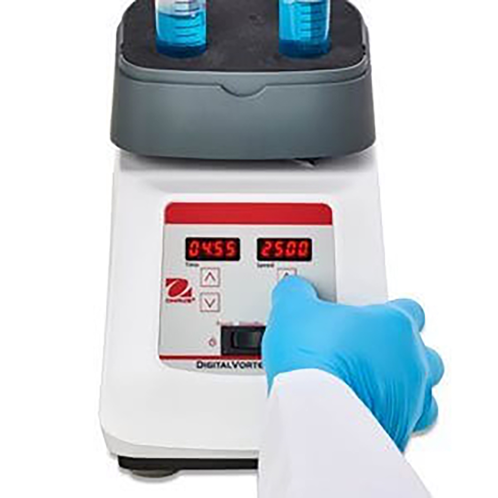 Its robust die-cast housing ensures stability during high-speed operation, while the chemically resistant finish extends durability. The mixer operates quietly with minimal vibration, thanks to its balanced drive and secure platform design. Compatible with a range of OHAUS accessories, it can adapt to multiple vessel formats.