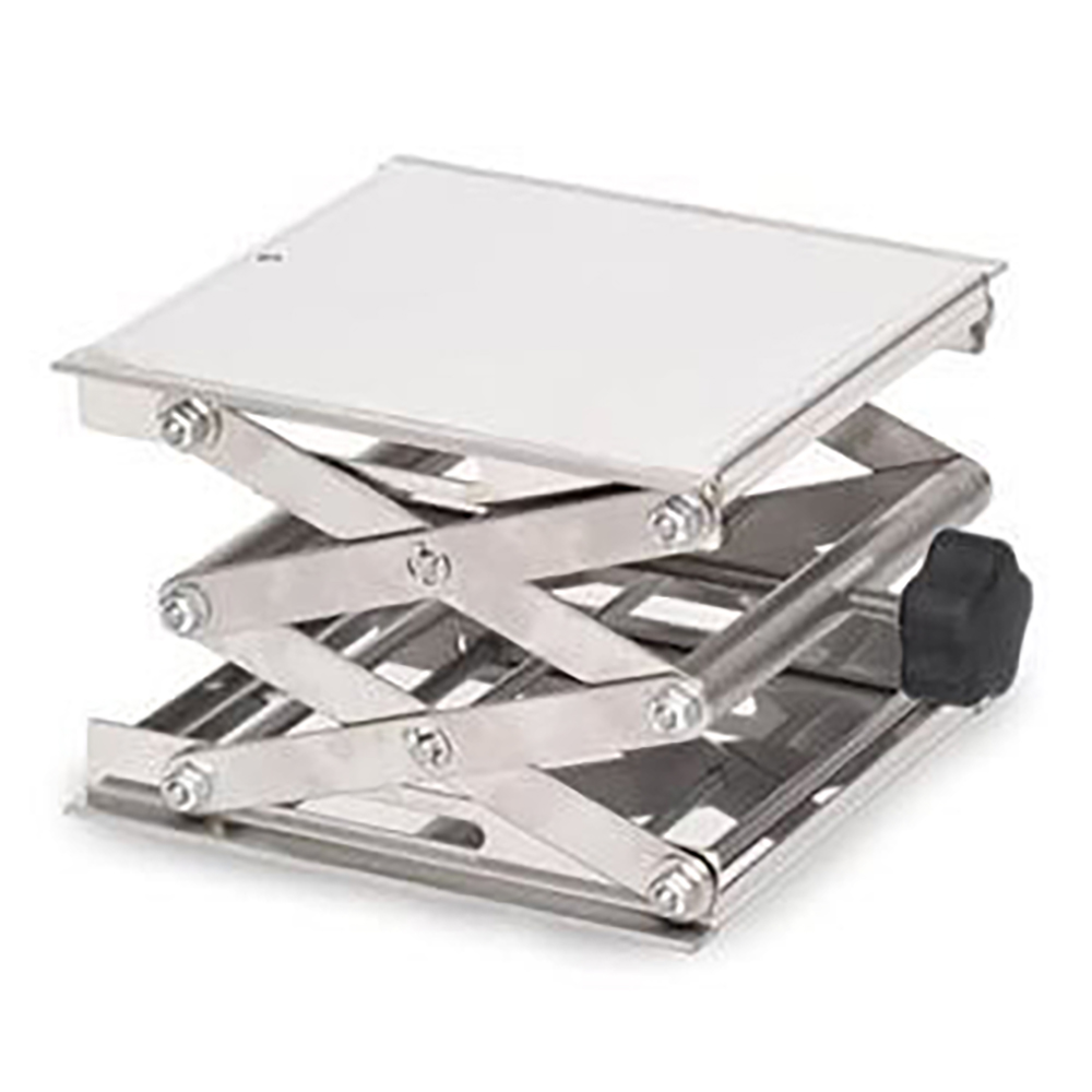 Laboratory lift table made of Stainless Steel with a height range of 102 mm – 495 mm, perfect for laboratory use. Heavy-duty lift table for laboratory use, designed for large range adjustments.